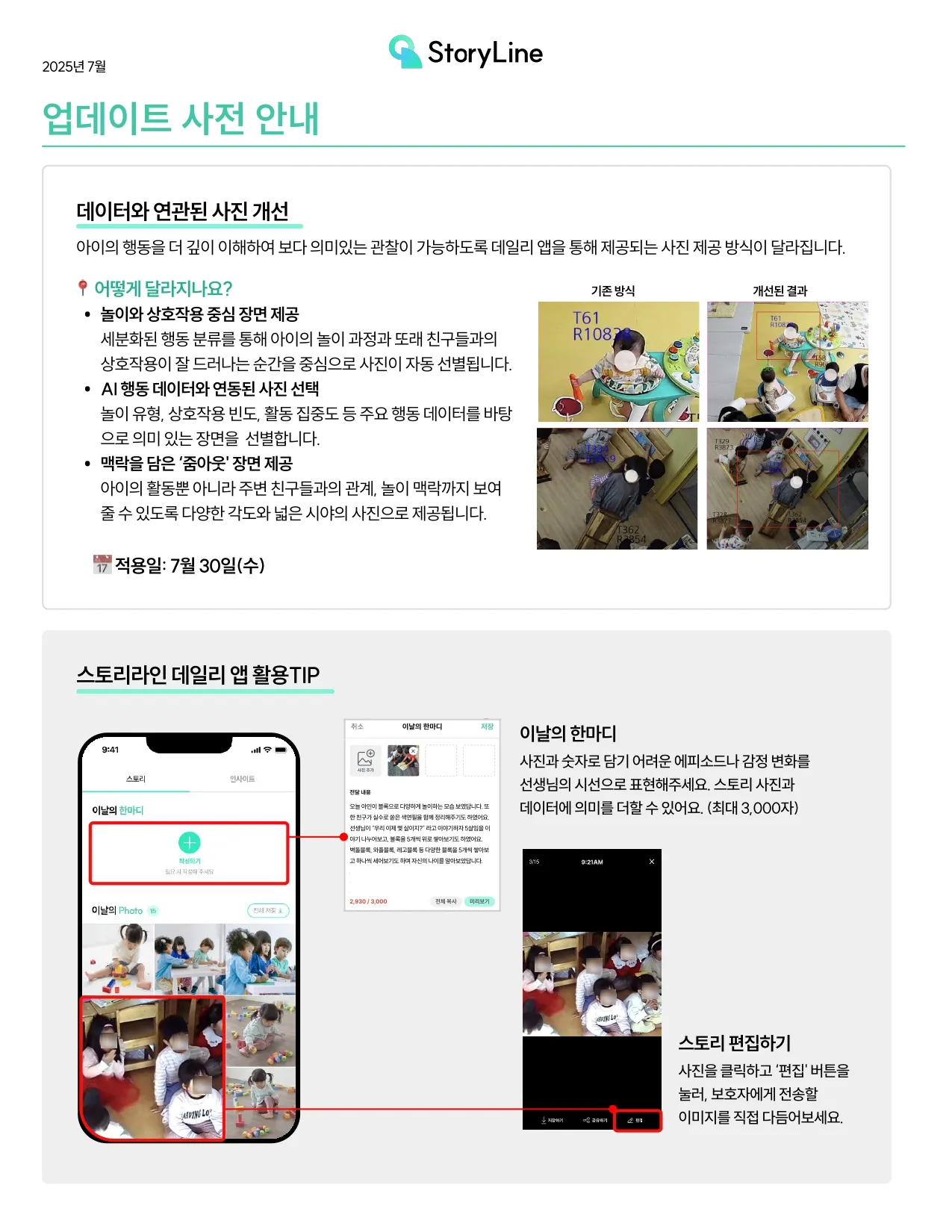부터 적용 ◦ '이날의 한마디', '스토리 편집하기' 기능 소개 • 이미지 편집 기능 :