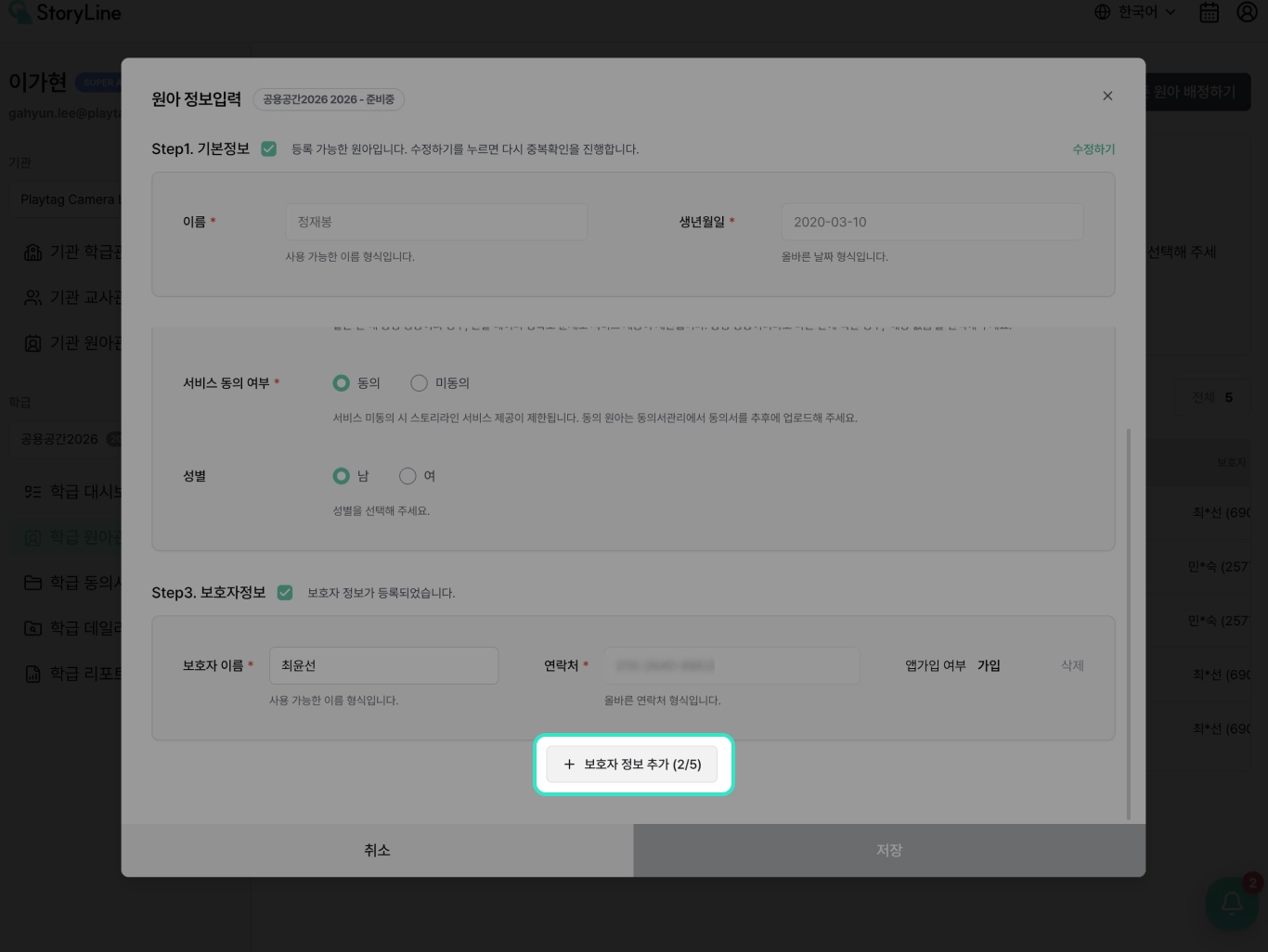 보호자 정보 등록