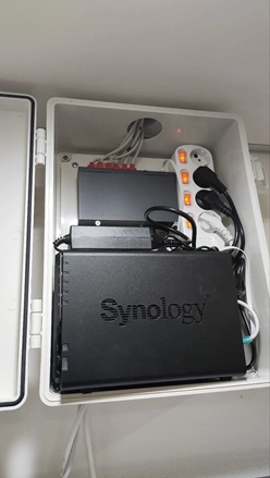 NAS와 스위치가 들어가 있는 하얀색 박스입니다.