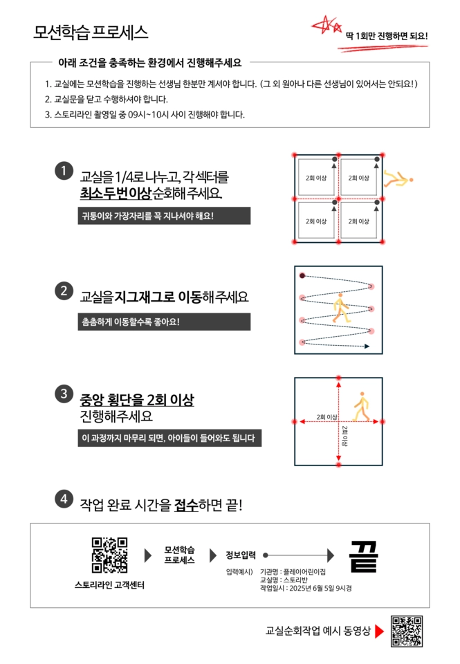 모션학습 프로세스 진행자 1명 외에 다른 사람 (교사 혹은 원아)이 있으면 안됩니다. 재촬영이 필요해요.