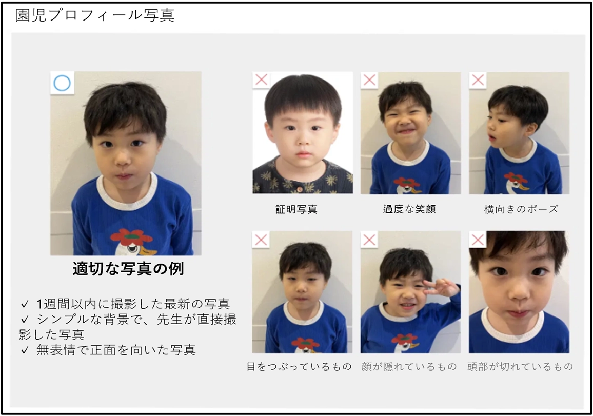 以下の写真は、承認されませんのでご注意ください(先生・園児共通)